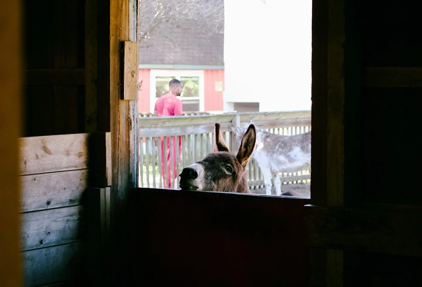 I went to a Fall Festival event Bluebird Farm Park in Hampton, Virginia this weekend. I had never been and while this event was really geared towards kids and families I got to see a really cool place. They had all sorts of barnyard animals and while in the alpaca barn, this donkey poked his head into the shadows and let out a loud “hee-haw” to let everyone know that he, too, was there.