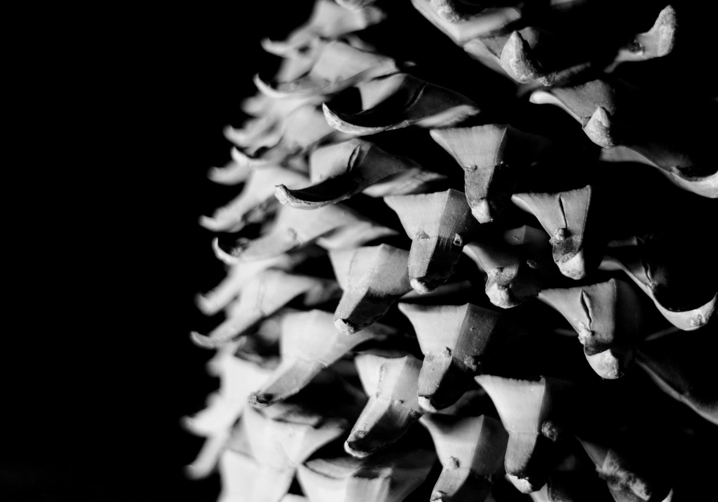 I chose to redo the texture challenge. My first was a bit uninspired and taken to fulfill the challenge. This took the extra challenge of side light into consideration with a much more complex object of a California redwood pine cone. Getting the focus correct was probably the most difficult due to the multiple layers of the cone. It’s something I want to get better at in 2026. Black and white helped to illuminate (literally) the texture of the pine cone.