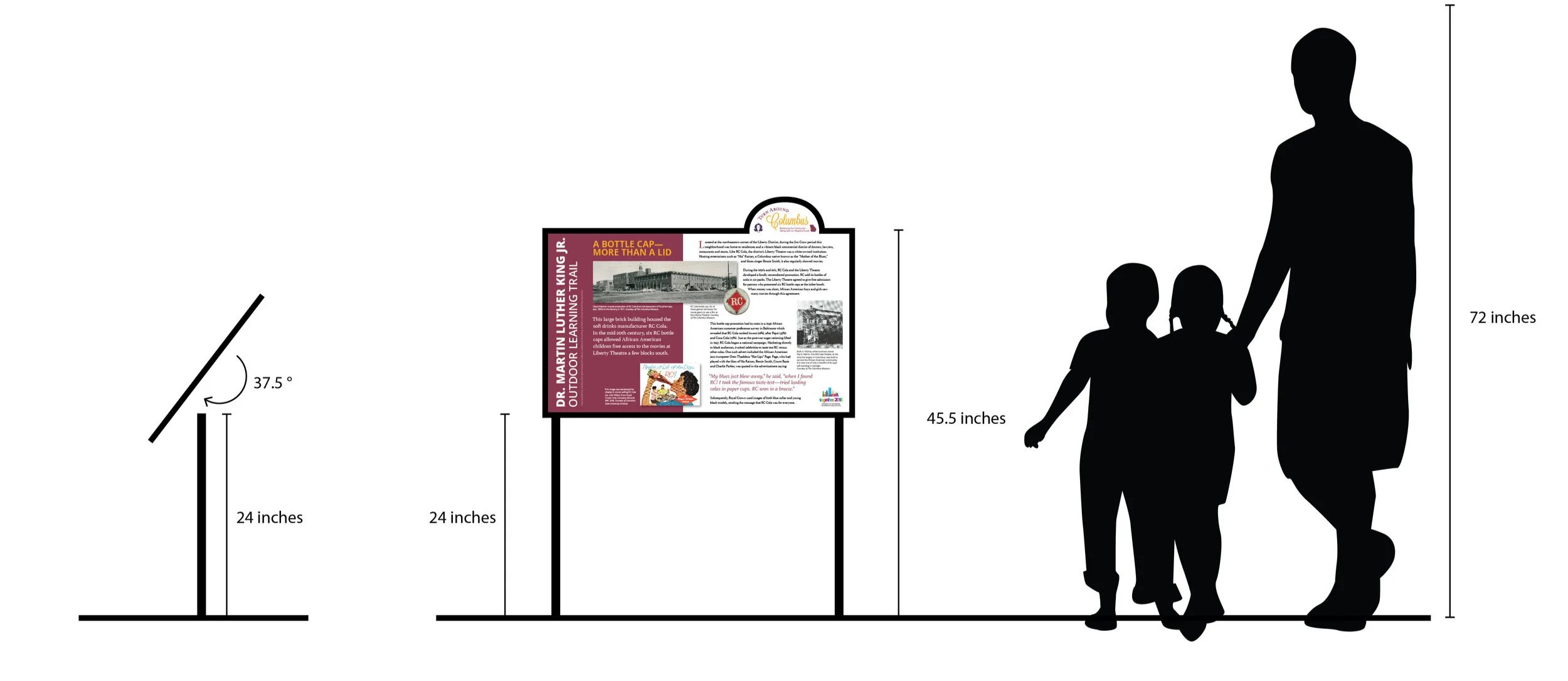 The responsibility of any exhibit designer is to create a layout that serves the story being told on the specific panel or section of the exhibit. Spanning 2.2 miles in length, the Martin Luther King Jr Outdoor Learning Trail features 11 historical markers which tells the story of struggles and contributions made by the Black community in Columbus Georgia.