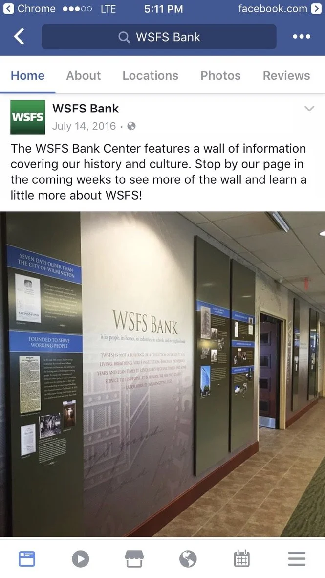 WSFS Bank wanted to transform their new office space with an exhibit showcasing the bank’s heritage in the state of Delaware and the local communities.